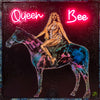 Overall, Alfie Borg’s mixed media art piece featuring Beyoncé is a captivating and visually stunning representation of the pop star. Through the use of vibrant colours, bold lines, and mixed media techniques, Borg successfully captures the essence of Beyoncé’s power and influence, creating a piece that is both visually striking and conceptually meaningful. The neon sign serves as a visual representation of her nickname, further enhancing the theme of empowerment for women.