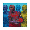 Jordan's fierce expression and powerful stance convey the intensity and dedication that propelled him to become a global icon. His journey from a young enthusiast to a basketball legend is etched into the canvas, each stroke embodying the grace and tenacity that defined his career. The overlapping images create a sense of motion, a tribute to the relentless energy he brought to every play.
