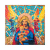 This transformative pop art piece reimagines Mary as a contemporary superheroine, bridging sacred tradition with modern iconography. Clad in a bold Superwoman costume, she embodies the extraordinary strength that motherhood has always required; the artist simply provides our age with the visual language to recognize what faith has long proclaimed.